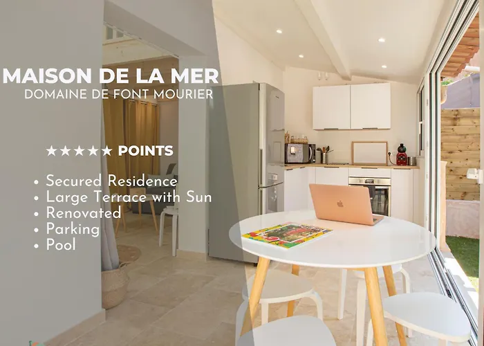 La Maison De La Mer, Golfe De Saint-Tropez apartman szezonális kinti medencéhez, napozó dekkhez és piknikezőhelyhez rendelkezik, valamint széllovaglás, könnyűbúvárkodás és búvárkodás lehetősége biztosított. Az apartman 6 km-re található a Musée de la Gendarmerie et du Cinéma és 4 km-re a Beauvallon golfklub területétől.